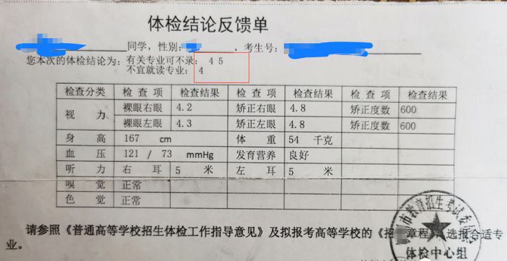 體檢是很重要的,因為學校現在有些專業是限報的。