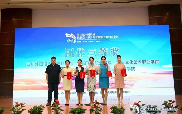近日,綿陽飛行職業學院再傳喜訊!第三屆全國院校民航空中乘務專業技能大賽西南賽區的戰場上,綿陽飛行職業學院參賽隊伍,榮獲團體三等獎,三位綿飛院學子獲機上廣播詞和理論考核、機上應急設備三大模塊技能之星的稱號。