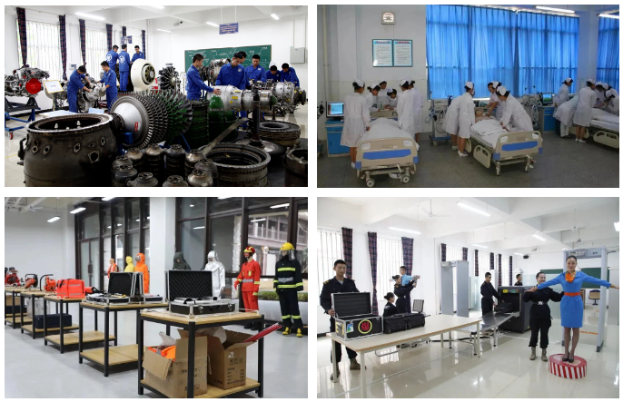 學院各類實訓設施設備總價值達5.1億元,包含模擬飛行訓練中心、空乘實訓中心、空保實訓基地、安檢實訓中心、航空機務實訓基地、航空物流實訓基地、高鐵乘務實訓基地、無人機實訓基地、消防救援實訓中心、汽車實訓室、人工智能實訓室、電子商務實訓室等,滿足各類專業的實訓需求,具備學生實訓、社會體驗、社會培訓、研學旅游等功能。