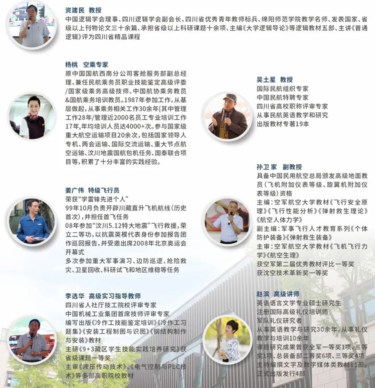 泛美教育集團與國內外航空公司、互聯網技術公司以及消防應急管理中心等高新技術企業簽訂戰略合作協議,確保師資行業領先。聘請經驗豐富行業專家及學術帶頭人到校任教,打造了飛行駕駛、空乘、空保、飛機維修、民航安檢、計算機、汽修、消防救援、社區康復等多個專家團隊。重視雙師型師資隊伍建設,并邀請諾貝爾獎獲得者、國際航協、新加坡航空公司、中國國際航空公司、中國南方航空、成都航空公司、消防工程師、人工智能工程師、汽車技能大師工作室等企業專家和教員擔任教授、講師。