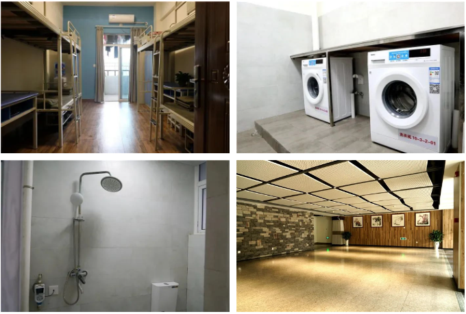學院的學生公寓是標準6人間,每間寢室都設有陽臺、獨立衛生間、洗漱臺并配有空調、熱水淋浴、衣柜、書桌、飲水機等設施設備,每層樓固定區域均配有全自動洗衣機、烘干機、掛燙機……