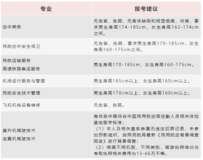 值得注意的是,報考四川西南航空職業(yè)學(xué)院根據(jù)專業(yè)特點及行業(yè)要求,專業(yè)具體報考建議如下: