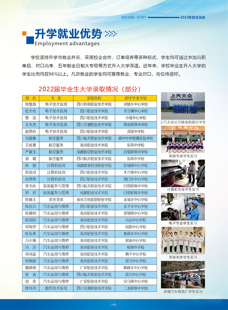 四川省閬中江南高級職業中學2023年招生簡章