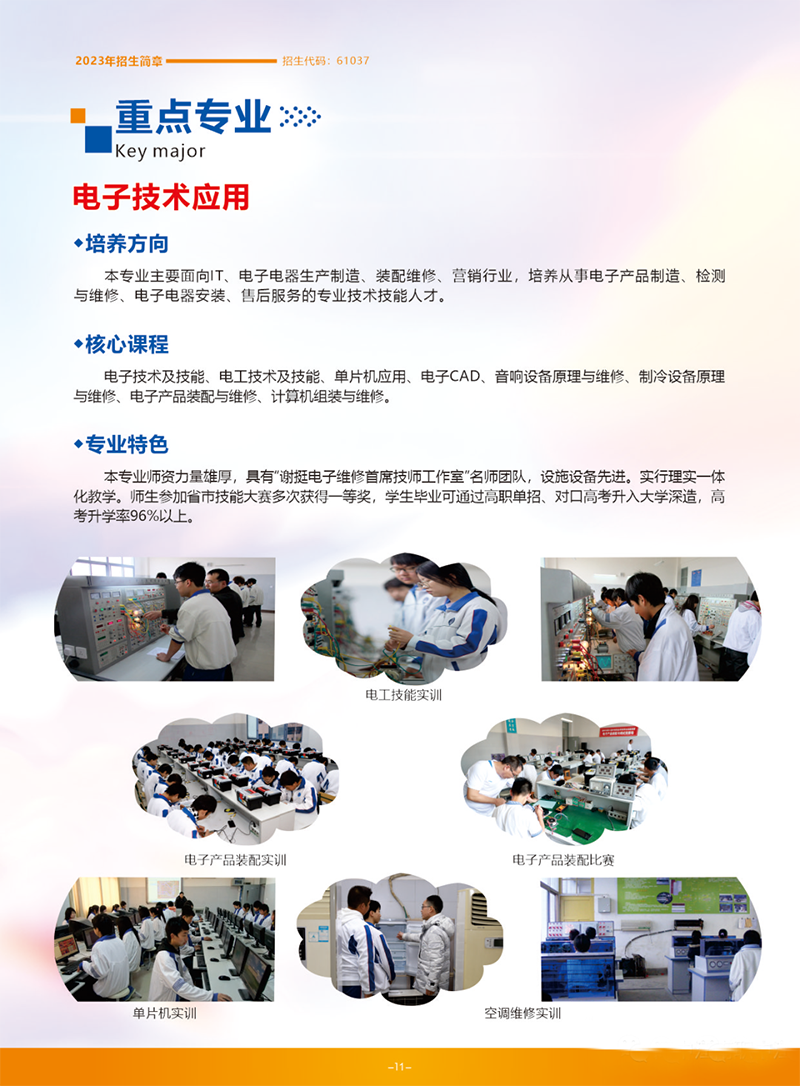 學校一直致力于培養高素質、全面發展的技術技能型人才,其專業設置涵蓋機電技術、電子信息、計算機應用、建筑工程等多個領域,在四川省具有良好的招生及培養聲譽。學校以“實用技能、德才兼備”為辦學方針,在師資、教材、實訓設備、就業等方面注重與社會需求的結合和與行業的合作,為學生的發展和就業打下了堅實的基礎,具有一定的職業能力和就業前景。