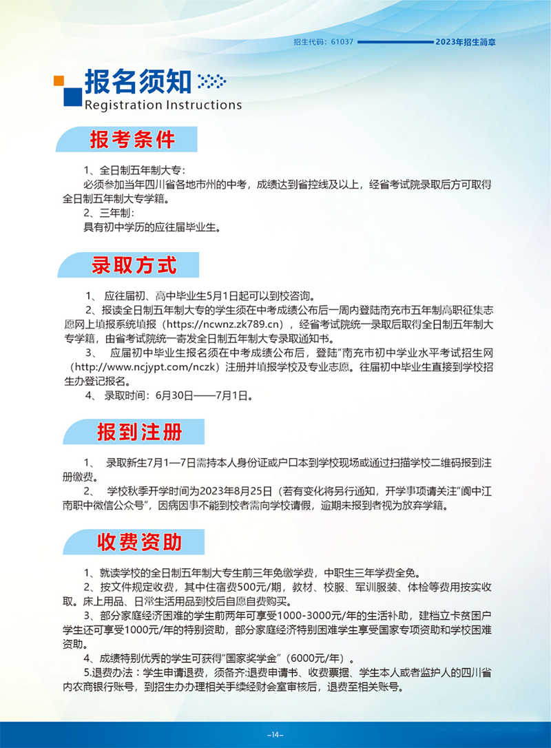 閬中江南高級職業中學2023年招生簡章